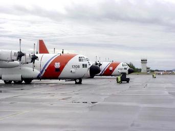 | Keywords: C-130 DVIDS1079760.jpg en Galena AK Aug 6 --Two C-130 airplanes from Coast Guard air station Kodiak wait on the tarmac at the local airport in Galena AK Galena became a hub of activity as four C-130s and more that 30 air crewmen flew on two different missions - search and rescue and law enforcement Both took place in the Bering Sea The HC-130 Hercules is a long-range surveillance and transport fixed-wing aircraft that is used to perform search and rescue enforcement of laws and treaties including illegal drug interdiction marine environmental protection military readiness and International Ice Patrol missions as well as cargo and personnel transport USCG photo by LYONS TOD PAC 1999-08-06 https //www dvidshub net/image/1079760 1079760 2013-12-11 18 40 GALENA AK US PD-USGov Air Station Kodiak Lockheed C-130 Hercules Images from DoD uploaded by Fæ |