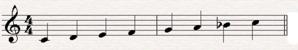 Keywords: C mixolydian.png Scale of the Mixolydian mode starting on C png image Own 2006-12-16 Aidan Hanrath Released into the Public Domain Mixolydian mode Musical scales in C