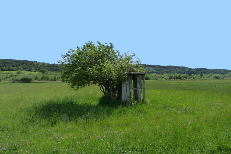Keywords: cabin abandoned landscape fields trees wind nature sky spring resistant green prairie backed protection green