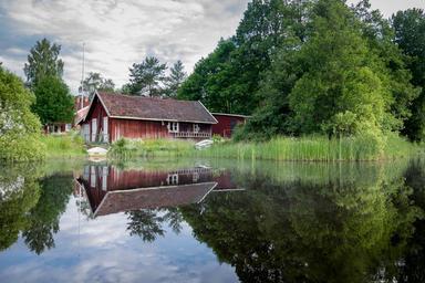 Keywords: cabin cottage lake refelction woods forest rural landscape house home nature resort chalet vacation holiday residence idyllic tranquil water