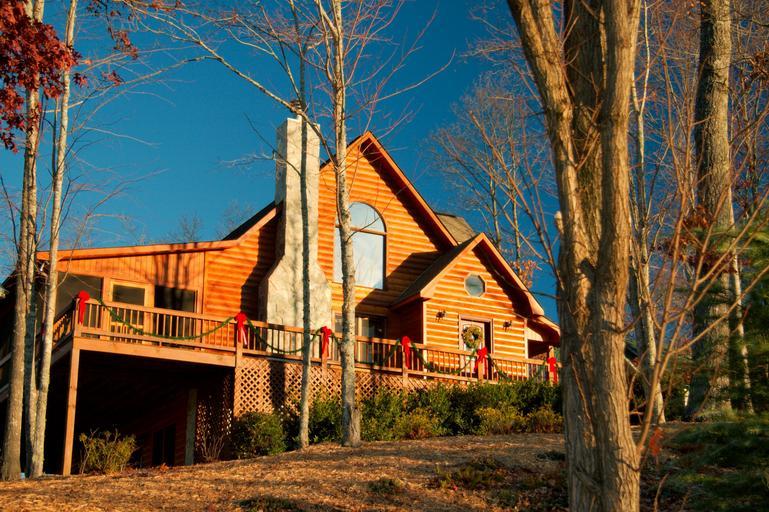 Keywords: cabin home wood log cabin christmas property decorations beautiful sky architecture georgia america