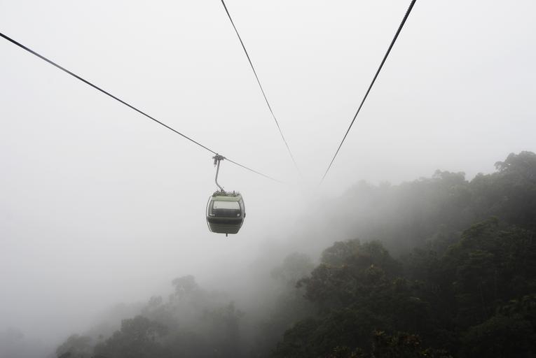 Keywords: cable car mist overhead high fog gondola aerial forest