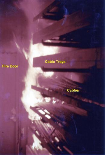 | Keywords: Cable tray fire sweden.jpg Image 2 of 5 of governmental fire test in Sweden This small fire house was loaded with cable trays full of cables These were connected between the floors causing cable penetrations between fire compartments When the penetrants were installed the government invited their local firestop manufacturers to install their products Kindling was placed below the trays These kindling blocks were set on fire The fire quickly engulfed all trays Results were mixed An enormous amount of smoke was generated before the fire was extinguished Trays twisted and buckled Own 2007-05-19 Achim Hering Fire Cable trays Electric cables Fire testing Fire doors |