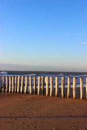 Keywords: cadzand-bad netherlands holland north sea beach summer july sky landscape nature blue distant sand rest idyll mood holzbuhne breakwater illuminated tracks in the sand traces