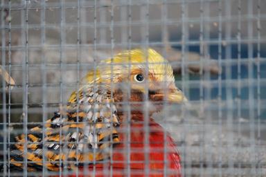 Keywords: cage grid caught zoo animal bird colorful imprisoned