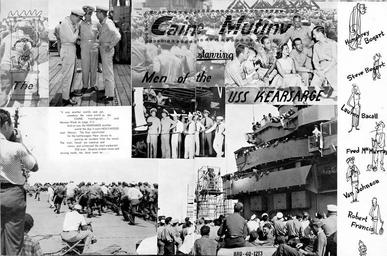| Keywords: Caine Mutiny Cruisebook Panorama.jpg en USS Kearsarge CVA-33 cruise book 1953 - Caine Mutiny filming 1953 U S Navy photo http //navysite de/cruisebooks/cv33-53/028 htm from the http //navysite de/cruisebooks/cv33-53/index_003 htm USS Kearsarge CVA-33 1953-54 cruise book available at http //navysite de/cruisebooks/index html Navysite de U S Navy other versions PD-USGov-Military-Navy Lauren Bacall in 1953 Humphrey Bogart 1953 in Hawaii Fred MacMurray Van Johnson Robert Francis Aboard USS Kearsarge CV-33 The Caine Mutiny film Pearl Harbor in the 1950s |