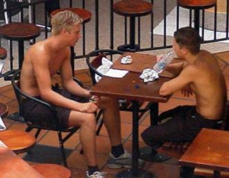 | Keywords: Cairns Cafe.jpg en Two young guys shirtless at a cafe in Cairns Australia own DogTwo 2009-07-15 Cc-zero Black clothing male Cafés in Queensland Cairns Queensland Portraits with 2 persons July 2009 in Australia Male blond hair Men facing left and looking left Men facing right and looking right Men of Australia Men wearing shorts Nude or partially nude men with bottles People of Australia in 2009 People sitting at tables Rectangular tables Restaurant tables Topless sitting men 2009 in Queensland 2009 photographs 21st-century men 15 July |