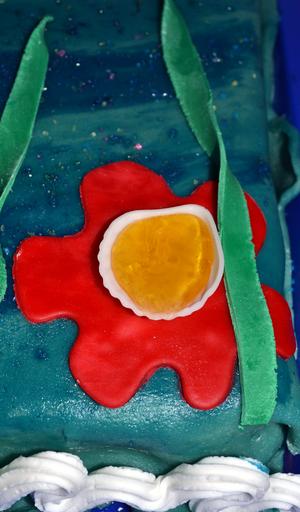 Keywords: cake deco flower underwater sugar decoration birthday cake colorful treat food shell sea grass red blue green children's birthday