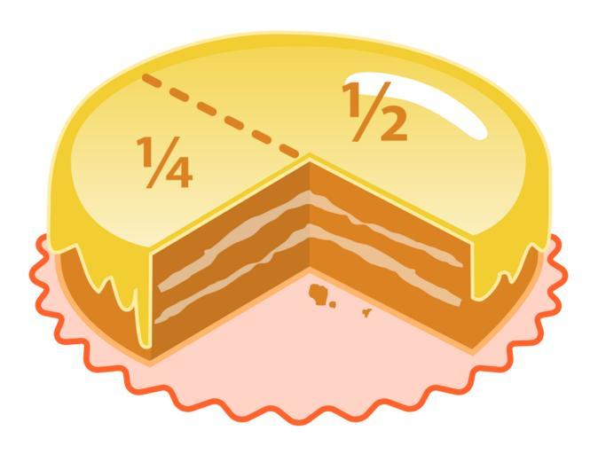 Keywords: Cake fractions.svg Made by Acdx in Illustrator inspired by Image Cake-quarters jpg 2007-03-20 own assumed Acdx fractions pie chart SVG cake icons One-fourth One-half Layered cakes Round cakes