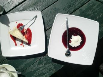 Keywords: cake plate rote grütze delicious sweet silver spoon cafe