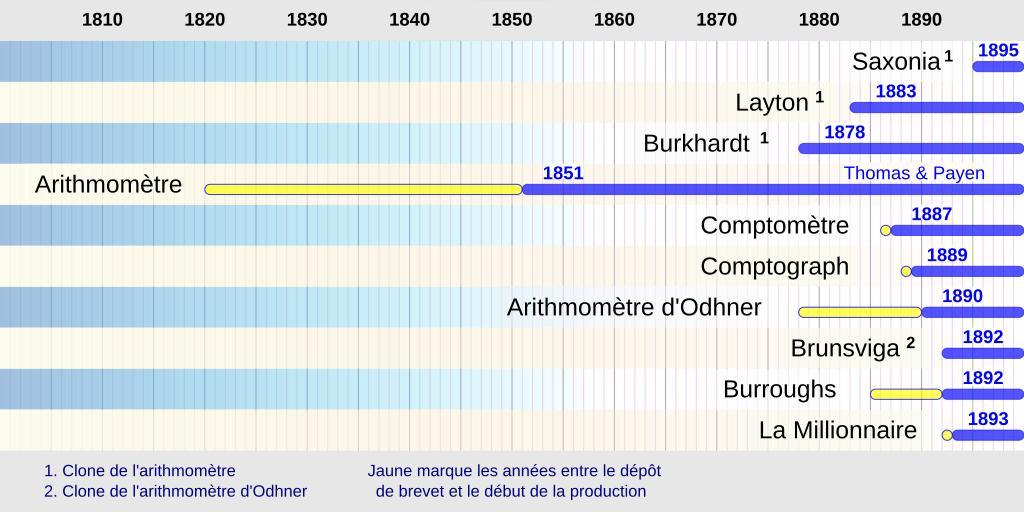 | Keywords: Calculateurs mécaniques de bureau en production au XIX siècle.svg fr Calculateurs mécaniques de bureau en production au XIX siècle Ce fichier est une traduction de DesktopMechanicalCalculators_inProduction_intheXIXCentury svg own Ezrdr 2009-12-28 thumb left 2 Même graphe mais en Anglais Mechanical calculators |