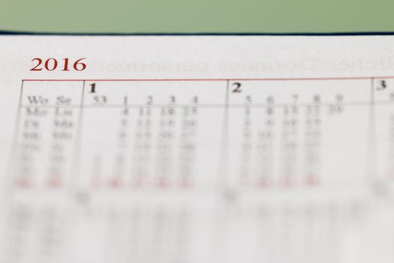 Keywords: calendar year 2016 months