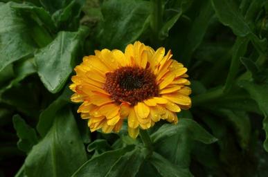 Keywords: calendula flower yellow herb green garden after shower