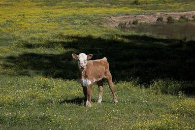 Keywords: calf beef animal farm livestock meat farming rural grass countryside mammal domestic cow meadow pasture looking standing