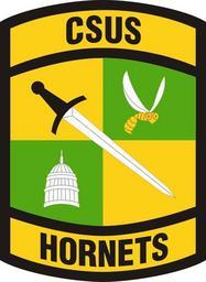| Keywords: California State University Sacramento AROTC SSI.jpg On a quartered yellow and green rectangle arched convexly at top and bottom with a 1/8 inch 32 cm black border a diagonal sword white with black handle from upper left to lower right point to base; between in second quarter a yellow stylized hornet with white wings; and in third quarter the white dome of the California State Capitol Building Attached above the rectangle a yellow arched scroll edged with a 1/8 inch 32 cm black border and inscribed CSUS in black letters Attached below the rectangle a yellow arched scroll edged with a 1/8 inch 32 cm black border and inscribed HORNETS in black letters Symbolism The green and yellow quartered shield reflects the four semesters of the ROTC advanced course and alludes to the leadership excellence patch The sword represents the military leadership training of the Cadets The hornet denotes the school ™s mascot The capitol dome recalls the school ™s location and symbolizes the state university system and the academic standards of the university Background The shoulder loop insignia was approved on 29 July 1991 TIOH Drawing Number A-10S-74 2011-07-21 09 57 29 http //www tioh hqda pentagon mil/Heraldry/SROTC/SROTC_School aspx s 8372 Institute of Heraldry PD-USGov Uploaded with UploadWizard California State University Sacramento Reserve Officers' Training Corps ROTC Insignia of the United States Army |