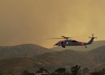 | Keywords: California Wildfires 140514-N-DX364-672.jpg en A MH-60S Sea Hawk helicopter assigned to Helicopter Sea Combat Squadron HSC 3 takes off to assist in aerial firefighting in Camp Pendleton Calif HSC-3 is assisting California Department of Forestry and Fire Protection by providing aircrews flying specially-equipped MH-60S helicopters to conduct aerial water drops against wildfires in San Diego County U S Navy photo by Mass Communication Specialist 1st Class Joan E Jennings/Released 2014-05-14 Petty Officer 1st Class Joan Jennings https //www dvidshub net/image/1352721 140514-N-DX364-672 2014-05-19 14 39 CAMP PENDLETON CA US PD-USGov-Military-Navy MH-60S Seahawk Marine Corps Base Camp Pendleton Images from DoD uploaded by Fæ |