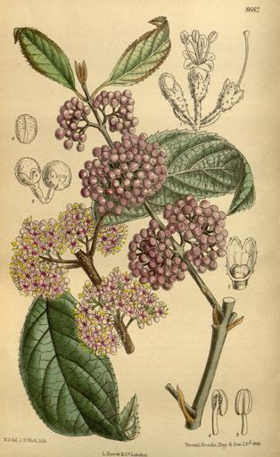 | Keywords: Callicarpa giraldiana 142-8682.jpg Callicarpa giraldiana Callicarpa bodinieri var bodinieri Lamiaceae Curtis's Botanical Magazine London vol 142 ser 4 vol 12 Tab 8682 - http //www botanicus org/page/471519 1916 M S del J N Fitch lith PD-Art Curtis's Botanical Magazine Volume 142 8682 |