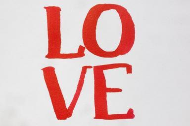 Keywords: calligraphy letters love paint watercolor tusche indian ink brush painting technique soluble in water color image color sketch red