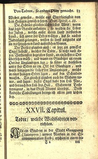 Keywords: Calmet – Gelehrte Verhandlung der Materi, Von Erscheinungen der Geistern, Und denen Vampiren in Ungarn, Mahren etc – Teil II – 083.jpg 082 084