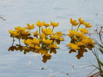 Keywords: caltha palustris aquatic plant blossom bloom yellow ranunculaceae water