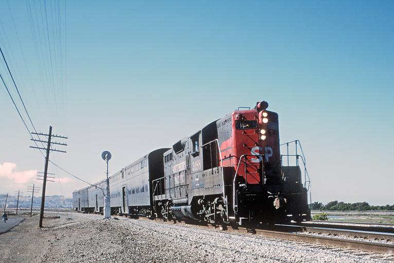 | Keywords: southern pacific southernpacific outdoor vehicle railroad train SP 3188 with an eastbound exiting the curve at Sierra Point in Brisbane, CA in June 1985 SP 3188 with an eastbound exiting the curve at Sierra Point in Brisbane, CA in June 1985 |