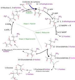 Keywords: Calvinzyklus-es.svg es Esquema del ciclo de Calvin fijación del CO2 en la fase oscura de la fotosíntesis 2013-03-13 06 42 08 File Calvinzyklus svg Lanzi traducido al español por Alejandro Porto cc-zero Calvin cycle