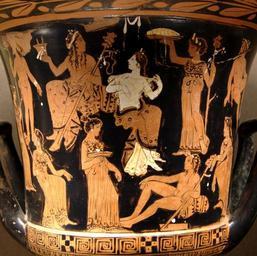 | Keywords: Calyx-krater Louvre CA929 n2.jpg Dionysos Ariadne satyrs and maenads Side A of an Attic red-figure calyx-krater ca 400-375 BC From Thebes Dionysos Ariane satyres et ménades Face A d'un cratère en calice attique à figures rouges vers 400-375 av J -C Provenance Thèbes H 27 9 cm 10 ¾ in Diam 28 6 cm 11 ¼ in Museum Louvre Department of Greek Etruscan and Roman Antiquities Sully first floor room 44 case 2 object history credit line Purchase 1898 accession number CA 929 User Bibi Saint-Pol own work 2007-06-15 other versions <gallery> Image Calyx-krater Louvre CA929 jpg Full krater Image Dionysos Ariadne Louvre CA929 jpg Dionysos and Ariadne </gallery> Ariadne in ancient Greek pottery Dionysos in ancient Greek pottery Satyrs in ancient Greek pottery Thyrsos in ancient Greek pottery Kantharoi in art Calyx kraters Attic red-figure pottery Greek antiquities in the Louvre - Room 44 400s BC pottery in France 390s BC pottery in France 380s BC pottery in France 370s BC pottery in France Maenads in ancient Greek pottery |