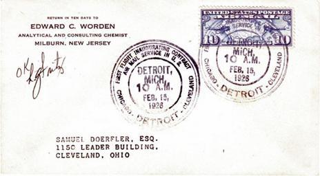| Keywords: CAM 6 First Flight Feb. 15, 1926.jpg First flight cover carried over CAM-6 from Detroit to Cleveland on the first commercial U S Air Mail flight February 15 1926 Notes The contractor for this route was the Ford Motor Company operating as Ford Air Transport using a fleet of six Ford built http //www aerofiles com/_ford html Stout 2-AT single engine metal skin high wing monoplanes The cover is autographed by http //www dmairfield org/people/fritz_lg/index htm Lawrence G Fritz who was the pilot of the first flight from Ford Airport at Dearborn MI on the CAM-6 eastbound leg to Cleveland Capt Fritz was later the Vice President for Operations for TWA thumb right 180pxThe USPS issued a 13-cent commemorative Postage Stamp Scott 1684 on March 19 1976 honoring the 50th anniversary of U S commercial aviation launched with the Contract Air Mail service The stamp includes an image of the Stout AT-2 used on CAM-6 The Cooper Collection of Aero Postal History Photograph by uploader 1926-02-15 Centpacrr image Postage stamp CDS PD-USGov PD-USGov-pre1978stamp Anything else postal address etc PD-Pre1978 Original upload log en wikipedia Stefan4 CommonsHelper page en wikipedia CAM_6_First_Flight_Feb _15 2C_1926 jpg 2008-05-29 10 52 Centpacrr 649×358× 82063 bytes <nowiki>First flight cover carried over CAM-6 from Detroit to Cleveland on the first commercial U S Air Mail flight February 15 1926 The Cooper Collections </nowiki> Stamps of the United States 1921-1930 First flight covers Blue stamps |
