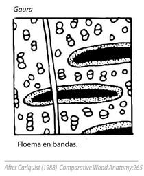 | Keywords: Cambial Variants (Anomalous Secondary Growth) Fig. 8.4 Gaura (in Spanish).svg Fig 8 4 Modes of interxylary phloem occurrence Phloem strands may be very small with only one or two sieve tubes Stylidum ; or larger in bands Gaura ; in confluent axial parenchyma Combretum ; centripetal with older phloem crushed at abaxial sides of phloem strands Strychnos Conventions for this and other figures in this chapeter black phloem blank with circles indicating vessels xylem; stippled axial parenchyma vertical or variously diagonal lines in pairs rays S Carlquist 1988 p 265 Fig 8 4 Chapter 8 Cambial Variants Anomalous Secondary Growth In Comparative Wood Anatomy Part of the series Springer Series in Wood Science Springer Verlag Berlin Heidelberg 1988 S Carlquist 1988 Tracing data from a scientific diagram taken from primary scientific literature not the scope of copyright laws PD-ineligible Equivalent to cc-0 Wood anatomy Oenothera sect Gaura |