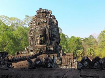 Keywords: cambodia angkor religion temple bayon face smile statue ruins