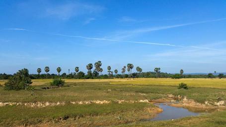 Keywords: cambodia asia siem reap province landscape palm trees rice fields sky