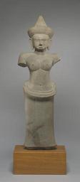 | Keywords: Cambodian - Female Deity - Walters 25212.jpg This sculpture was carved during the same period that Angkor Wat a great temple dedicated to the Hindu god Vishnu was constructed The temple and its central image were intended to bring about the union of the soul of the king with Vishnu This goddess may be Vishnu's wife Lakshmi; originally sacred objects held in her hands would have identified her between 1110 1160 Angkor sandstone cm 64 8 20 3 accession number 25 212 32938 Lispenard and Ambassador Marshall Green 1994 Walters Art Museum Gift of Lispenard and Ambassador Marshall Green 1994 place of origin Cambodia Walters Art Museum license Southeast Asian art in the Walters Art Museum Sculptures from Cambodia Media contributed by the Walters Art Museum needs category review |
