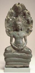 | Keywords: Cambodian - Naga-Protected Buddha - Walters 542730.jpg conj or Cambodia This bronze Buddha holds an object in his hands a container or a gem- possibly but not certainly an attribute of the healing Buddha Bhaisajyaguru 2nd half Other date century 12 Khmer leaded bronze at knees cm 20 3 8 5 accession number 54 2730 9483 Private collection Thonburi prior to April 13 1951 Alexander B Griswold Monkton April 13 1951 presented to the Breezewood Foundation December 1960 inv no 481 Walters Art Museum Henry Walters Bequest of A B Griswold 1992 none Unearthly Elegance Buddhist Art from the Griswold Collection The Walters Art Gallery Baltimore 1995 place of origin Thailand Walters Art Museum license Southeast Asian art in the Walters Art Museum Sculptures from Cambodia Media contributed by the Walters Art Museum needs category review |