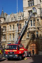 Keywords: Cambridge-TL-rising-5.jpg Photograph of a turntable ladder Own 2007-06-24 Ben Mills Benjah-bmm27 Images by Ben Mills Cambridgeshire Fire and Rescue Service Turntable ladders