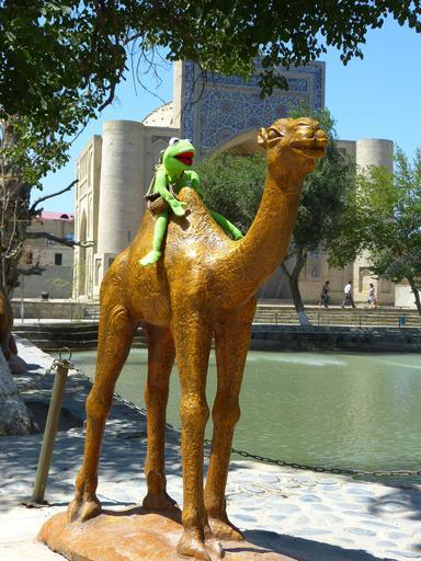 Keywords: camel fig pond water storage labi hauz bukhara kermit frog ride uzbekistan
