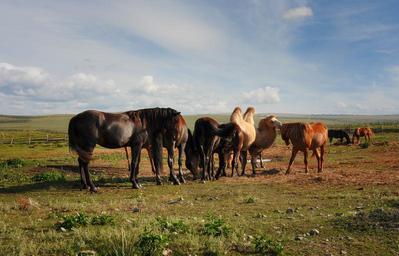Keywords: camel horses farm rural landscape animals summer field