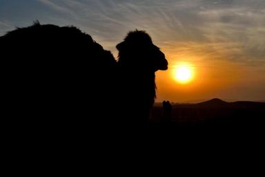 Keywords: camel sunset silhouette desert
