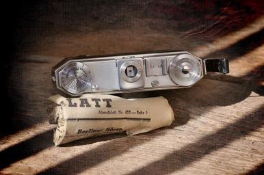 Keywords: camera photo camera daily newspaper wood old antique vintage