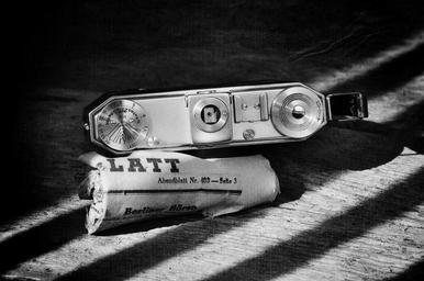 Keywords: camera photo camera newspaper daily newspaper wood antique old black and white recording