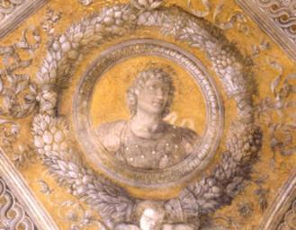 | Keywords: Camera picta, cesari, claudio 01.jpg Artwork Creator Andrea Mantegna Camera picta - detail langswitch Kaiser Claudius Emperor Claudius cesari Claudio between 1465 1474 Fresco Institution Camera degli Sposi Palazzo Ducale Mantua object history credit line accession number http //www cameradeglisposi it PD-old-100 Camera picta - Ceiling Paintings of Claudius |