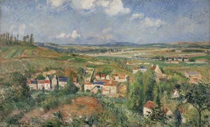 | Keywords: Camille Pissarro - L'hermitage en été, Pontoise (1877).jpg Artwork Creator Camille Pissarro Title L'Hermitage om sommeren Pontoise L'Hermitage in Summer Pontoise L'hermitage en été Pontoise 1877 Oil Canvas cm 56 5 91 Institution Private collection accession number C Pissarro 1877 ~ lower left signature and date http //www sothebys com/en/auctions/ecatalogue/2011/impressionist-modern-art-evening-sale-n08741/lot 36 lotnum html Sotheby's New York 03 May 2011 N08741 lot 36 Other versions Q21741407 PD-Art-100 Paintings of Pontoise by Camille Pissarro Landscape paintings of France 1870s landscape paintings Images from Sotheby's 1877 paintings by Camille Pissarro |