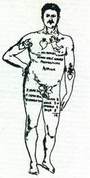 | Keywords: Camorrista-tattooed.jpg camorrista in Napoli Italy Anonymous drawing 1905 Camorrista tatuato a Napoli Italia Disegno anonimo del 1905 2011-12-06 It's a scan of page n° 51 from http //www amazon com/Storia-della-camorra-storia-Italian/dp/8879832875 this book Storia della camorra by Vittorio Paliotti Newton Compton; 1 ed edition 1993 anonymous custom anonymous-EU Camorra |