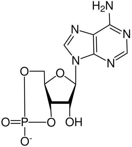 Keywords: CAMP (chemical structure).svg cAMP cAMP date own Wesalius Created with ChemDraw Cyclic adenosine monophosphate Uploaded with VicuñaUploader