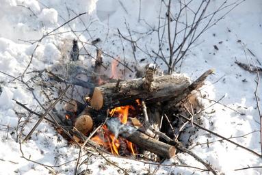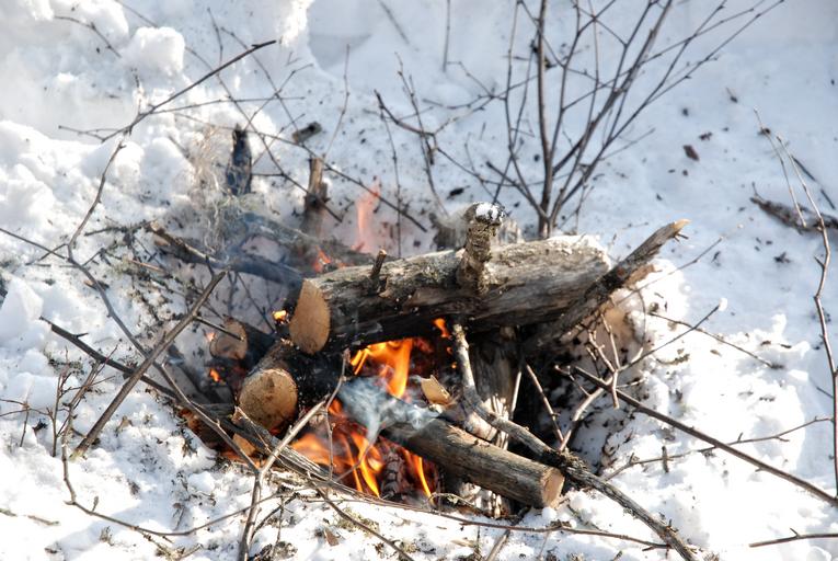 Keywords: camp fire winter fire snow outdoor cold flame wood heat nature adventure campfire camping forest