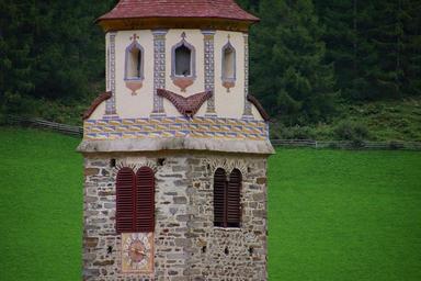 Keywords: campanile senales venosta merano south tyrol val venosta südtirol landscape italy summer nature vista green roof watch ancient religious christianity montain prato grass windows zoom paintings saint mary