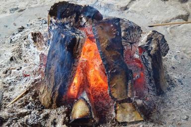 Keywords: campfire combs thread cutting burn hot embers ash smoke flame