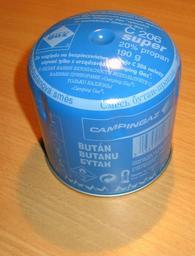 | Keywords: Camping gaz.jpg Camping-gas para calentar la comida en Non-refillable gas cartridge containing 80 butane and 20 propane for camping use de Einweg-Flüssiggaskartusche gefüllt mit 80 Butan und 20 Propan für Campingzwecke 2005-07-06 own assumed Julo Blue objects Liquefied petroleum gas Pierceable gas cylinders Campingaz DIN EN 417 |