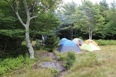 Keywords: camping tent forest outdoors woods green tree nobody day orange dome area wilderness nature wv west virginia ccampground dolly sods Rohrbaugh Plains