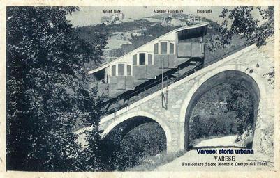 | Keywords: Vista del complesso turistico del Campo dei Fiori ripreso con una delle carrozze della funicolare per il Sacro Monte (linea inaugurata nel 1909). Al centro il Grand Hotel ancora in costruzione (terminato nel 1912) a destra la stazione a monte della funicolare e il Ristorante Campo dei Fiori (entrambe completate nel 1911). Tutte e tre le opere sono state progettate dall'arch. Giuseppe Sommaruga tra il 1908 e il 1910. varese funicolare campodeifiori | ||||