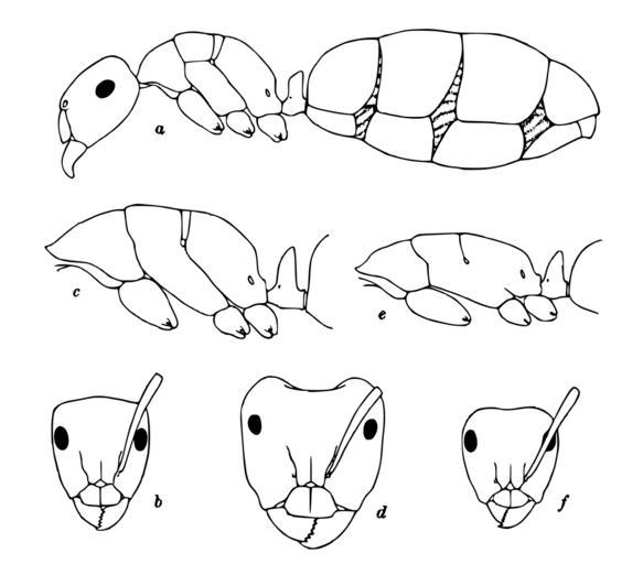 | Keywords: Camponotus.punctulatus.mermithergate.-.wheeler.svg Camponotus punctulatus subsp minutior mermithergate a mermithergate in profile; b head of same dorsal view; c thorax and petiole of normal worker maxima; d head of same; e thorax and petiole of normal worker minima; f head of same Wheeler 1929 A Camponotus mermithergate from Argentina Psyche 36 102-106 http //antbase org/ants/publications/3407/3407 pdf PDF 1929 W M Wheeler pd-old PD-old Drawings of animals by William Morton Wheeler Drawings of ants Camponotus punctulatus |